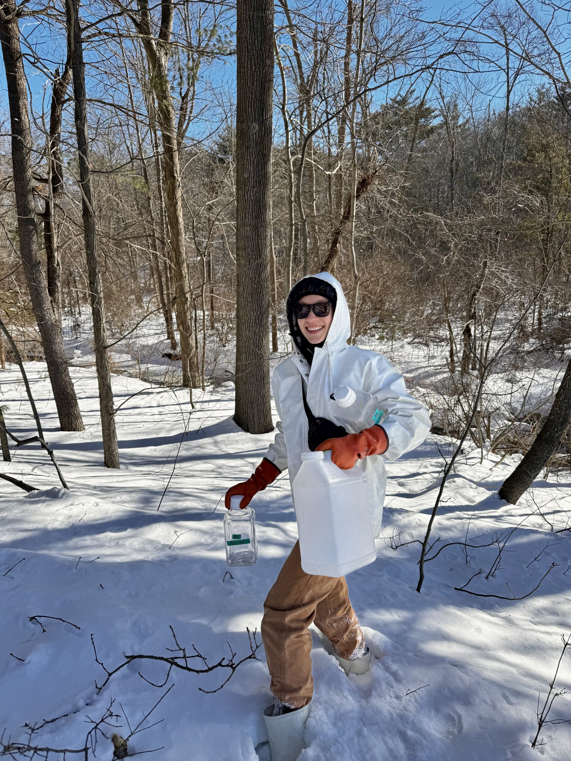 Nell Bowen collecting dam samples through the ice. Photo by Julia Holtzer.