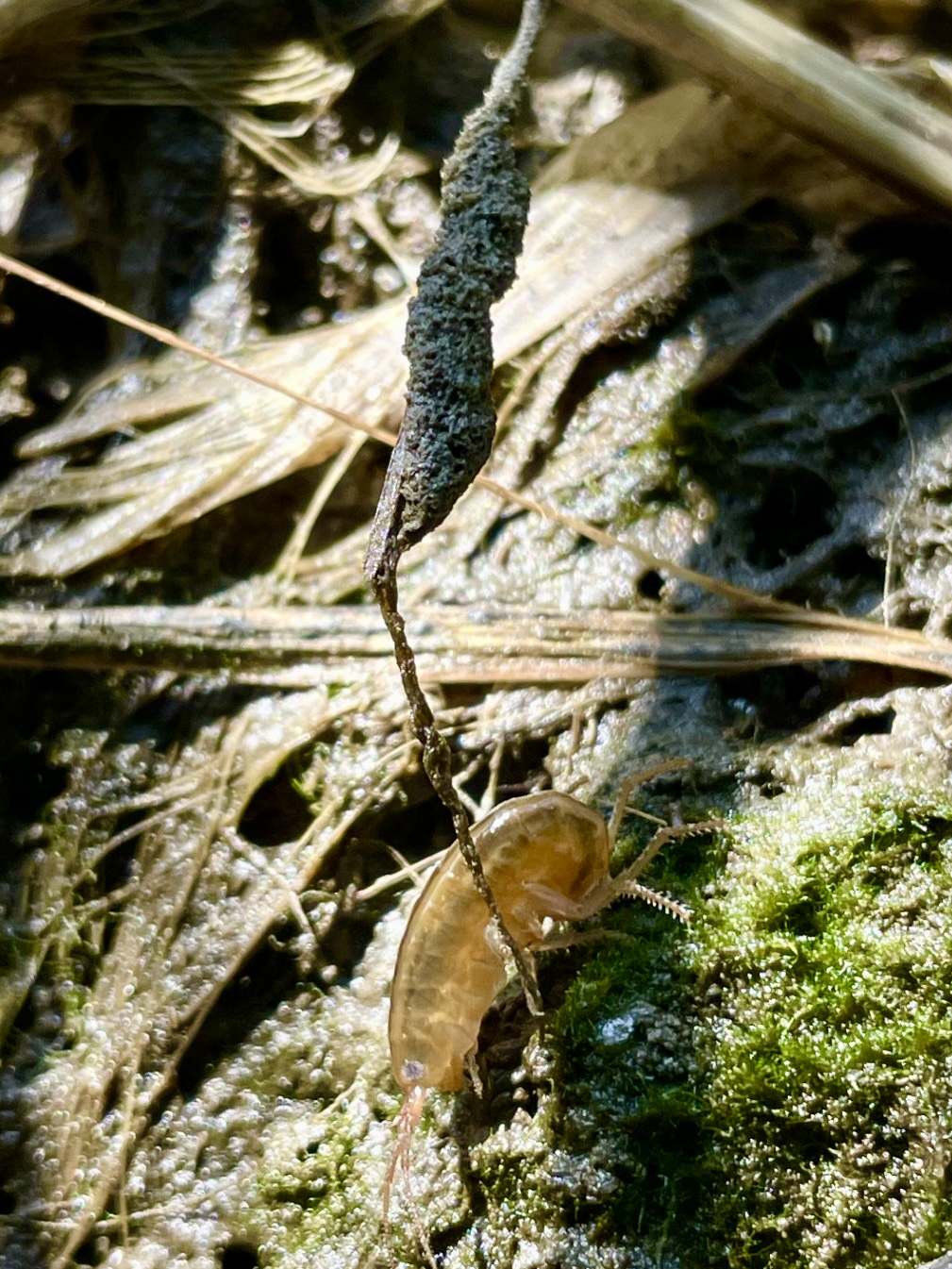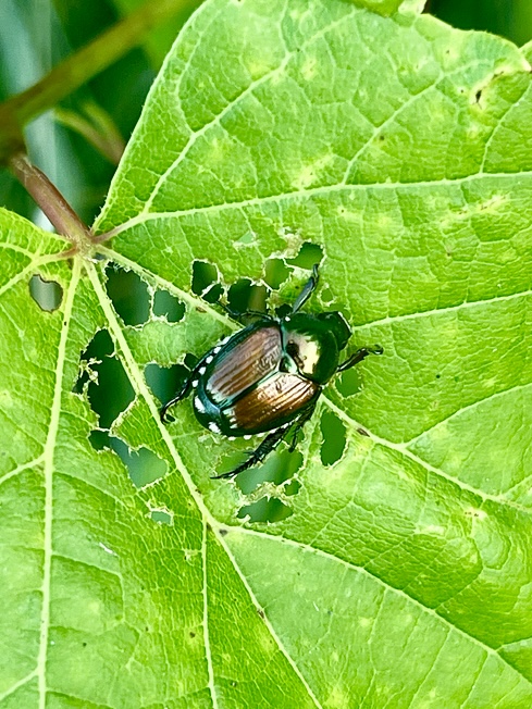 Left to right: Japanese beetle (Popillia japonica) 📷 Elizabeth Oliver; Winners Elizabeth Oliver (right) and Claire Curran (left) with their prizes; Amphipod Orchestia grillus that has been infected by a parasitic trematode (Levinseniella byrdi), which has turned it orange! 📷 Claire Curran.